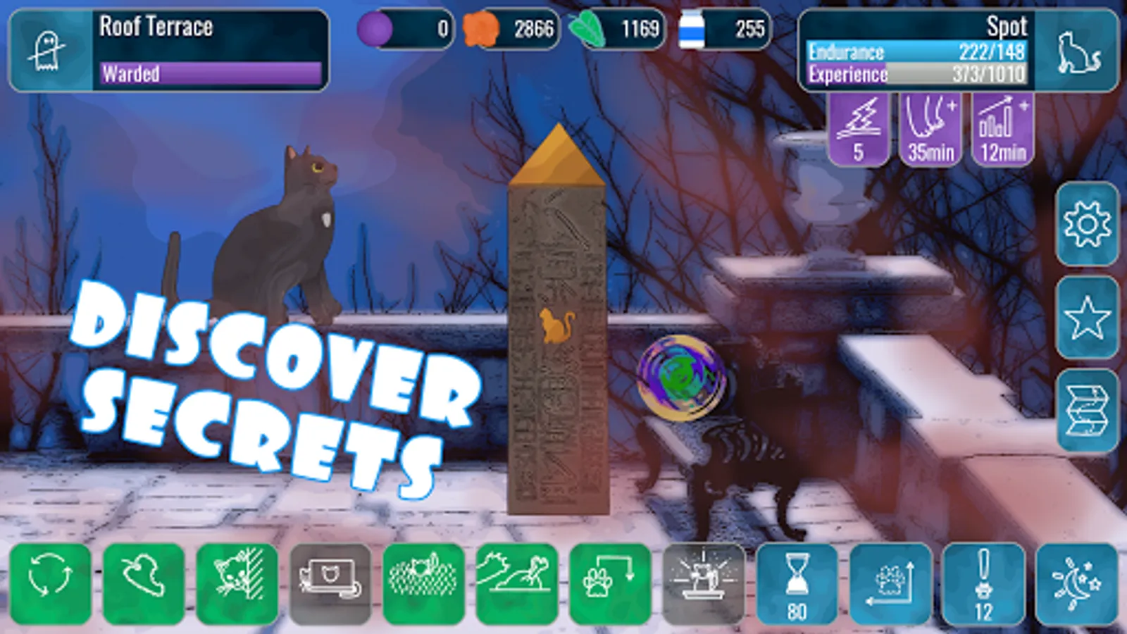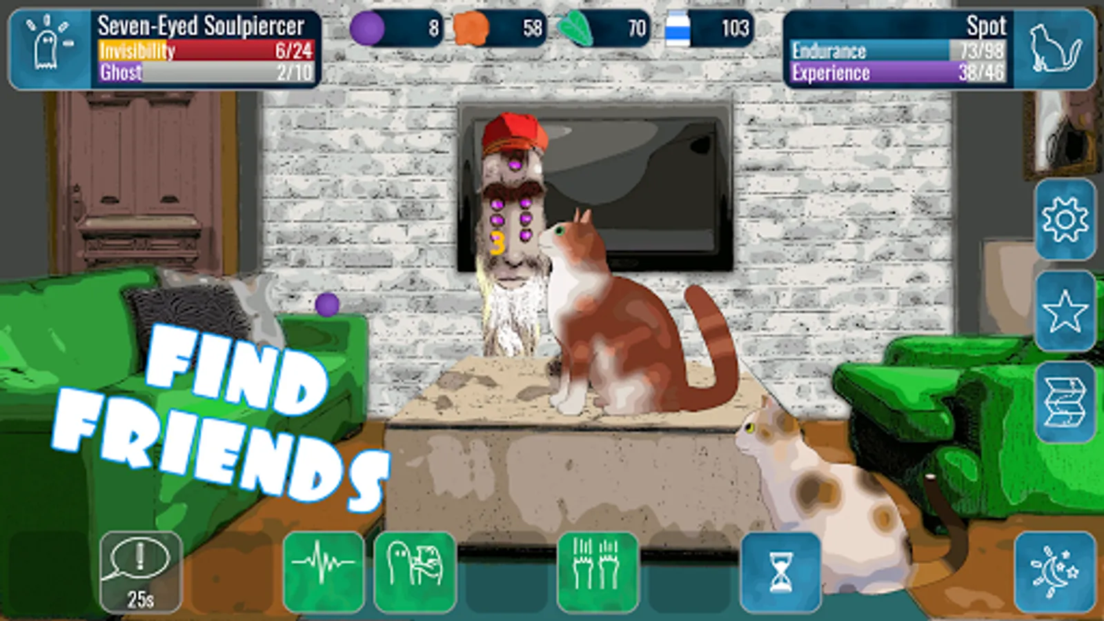 Improve your stats, unlock new expertises, find curious items, forge friendships with ghostly companions and other cats, gain new skills and abilities or upgrade existing ones. Go on quests, collect experience and keep discovering something new all the time. But always beware how you spend your catnip, after all you might rather want to eat it yourself?