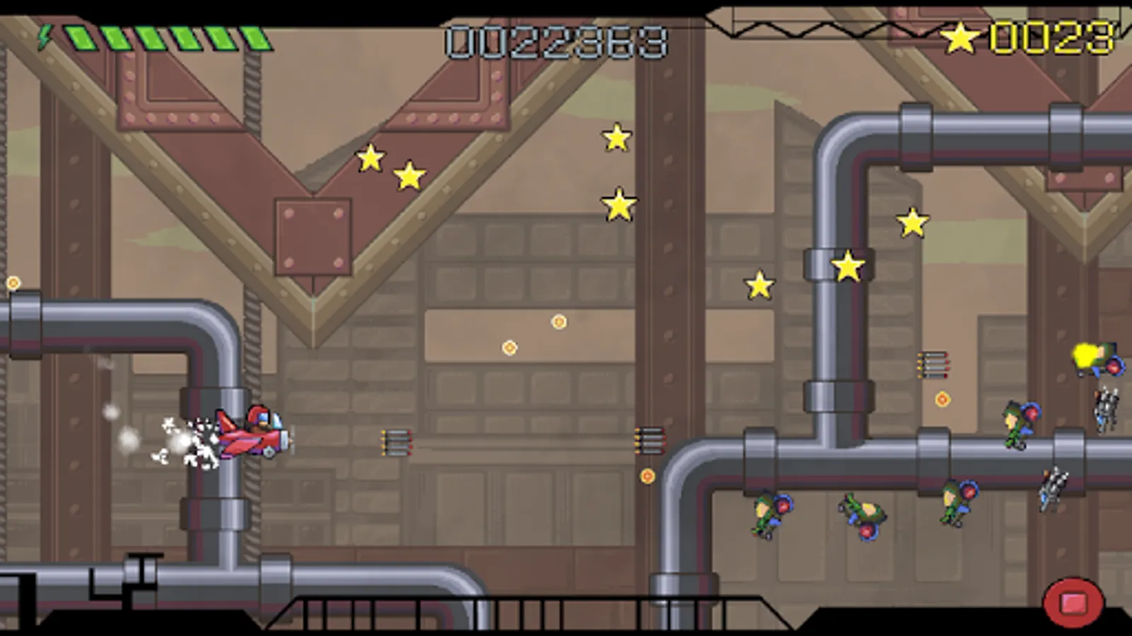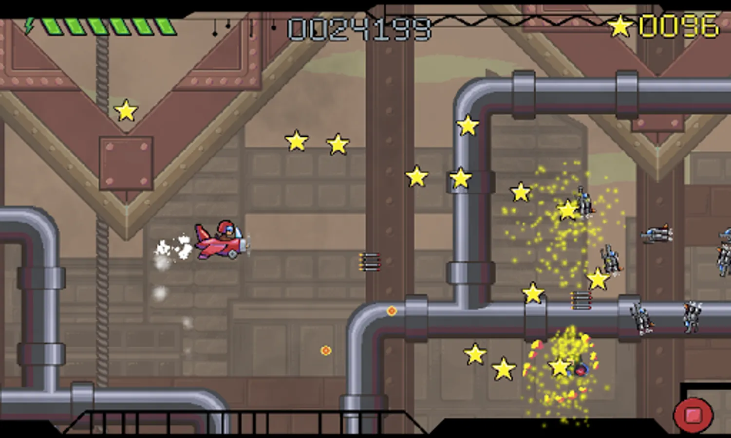 If you remember Arcade cabinet machine this game try remind these times! But this is not typical oldschool SHMUP game. It offers to you modern pixel art graphics, many particle effect, massive experience and many more.