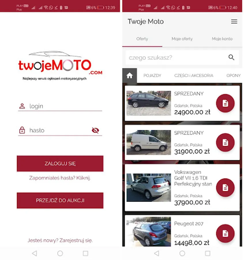 Browse the automotive offers of the twojemoto.com website in any categories such as: Cars, Trucks, Automotive parts, Rims, Wheels, Tires. Now you can easily look through every offer on our website on your smartphone. We invite you to download the application of auto-moto offers.