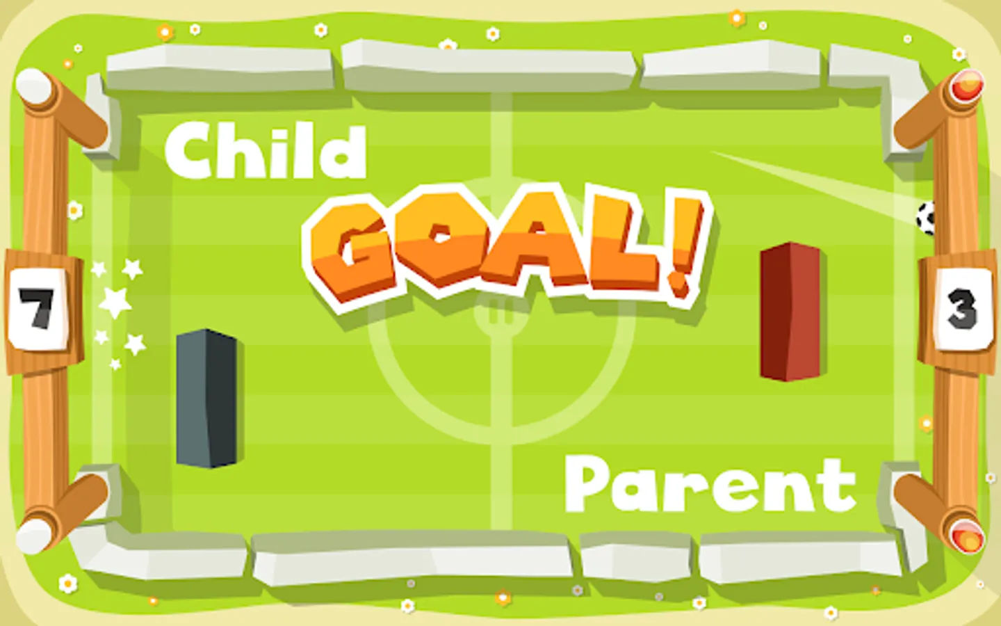 Football for kids is a fun and simple game that combines the classic arcade game Pong with the popular sport of football. You can play solo or with a friend on the same device, and try to score as many goals as possible by bouncing the ball with your paddle.