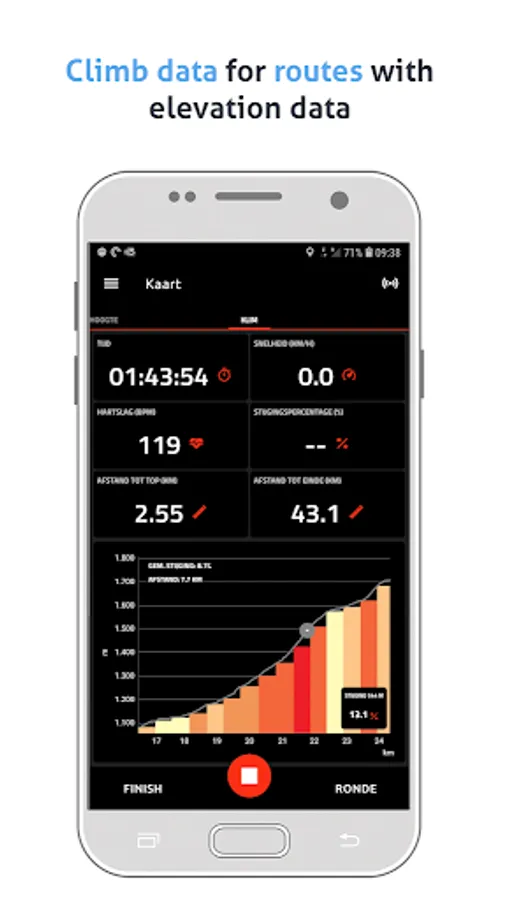 Routes with elevation data will be analyzed and the climb profile will be visible when you are close to (less then 500m) or on the climb.
