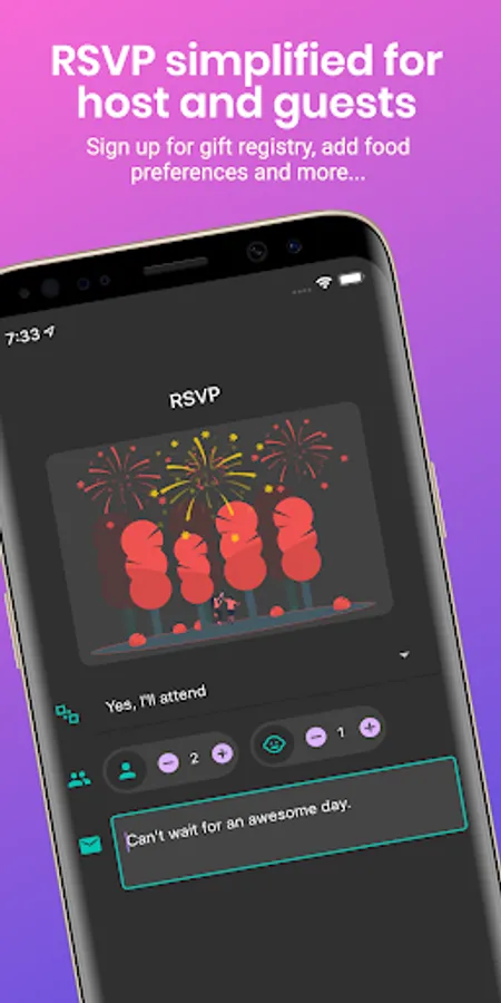 2. Create custom online invites with hundreds of beautiful images and themes to choose from. Add personalised message to make it extra special