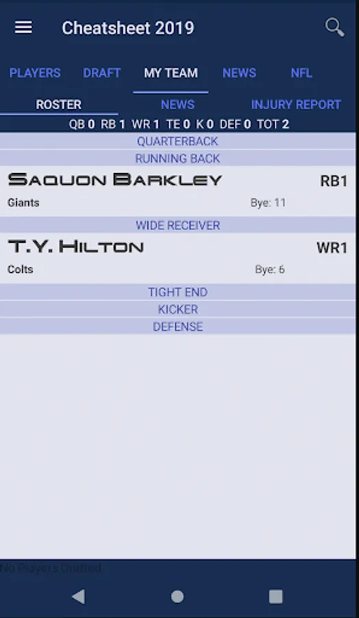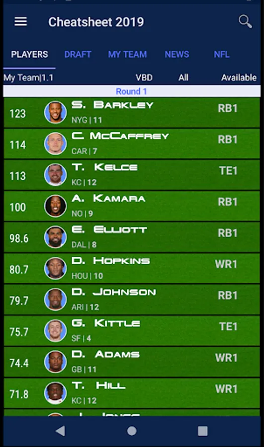 Cheatsheet calculates optimal player rankings for your league based on your league settings. It also has a mock draft . In addition to the best rankings, Cheatsheet keeps you on top of your game with up to date player projections, news, injuries and team depth charts. As your draft progresses Cheatsheet ranks your team after every pick, so you know what players and positions to focus on with your next pick.