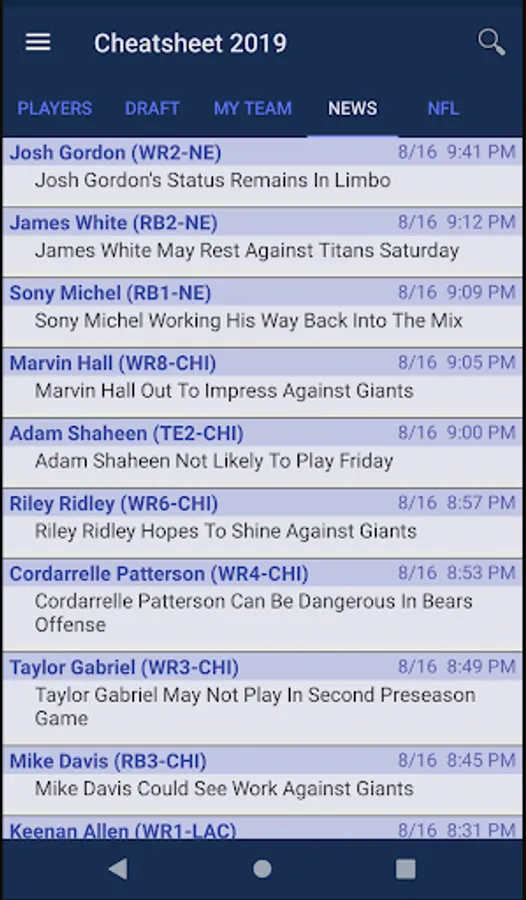 Cheatsheet is also designed to be used all season long. Weekly projections, news, injuries and stats are updated all season. Analyze weekly matchups, decide who to start and anticipate trades opportunities all the way to your championship game.