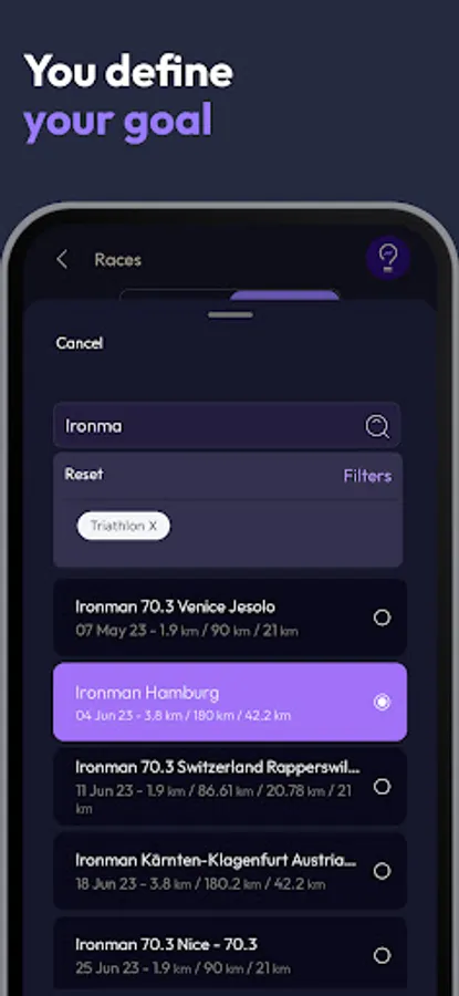 - Training plans for Ironman, ultra and sprint races, marathons, half marathons or Olympic triathlons.