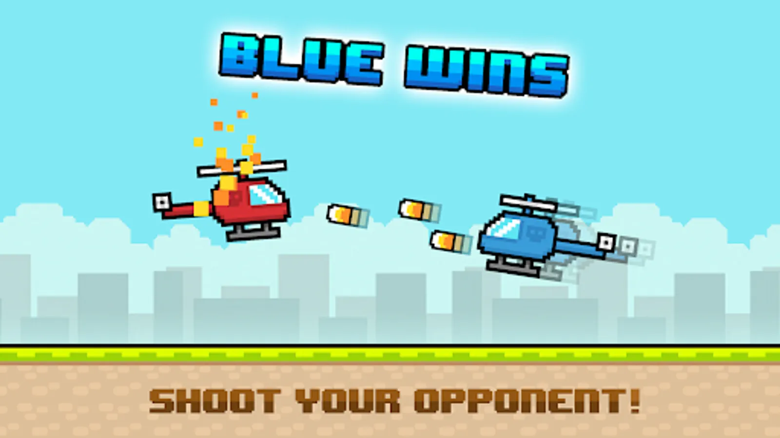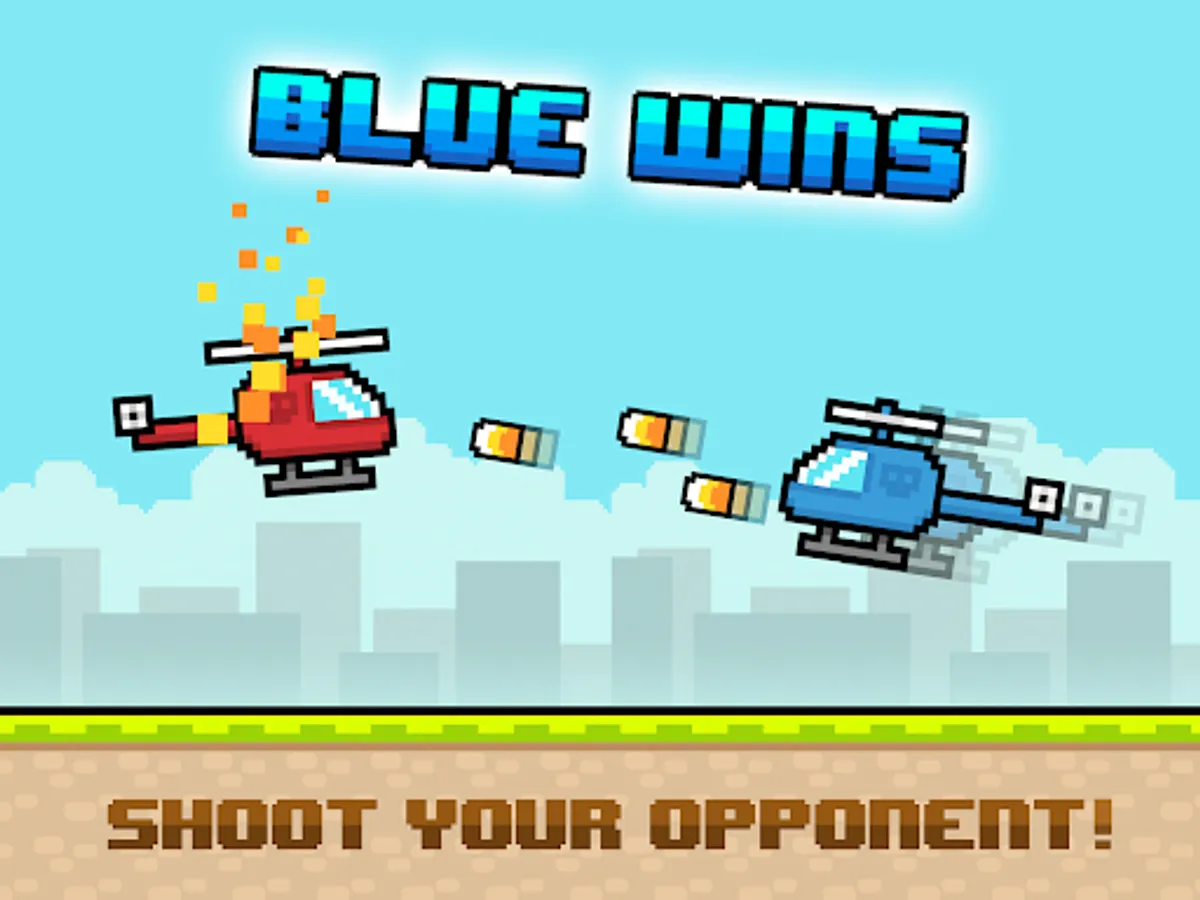 Try to stay in the air without hitting up, down or your opponent and try to pick rockets to let your heli to have a shooting ability. If you hit your opponent, you lose the game. Just wait for him/her to make mistakes or just shoot it with the bullets. Play with a friend and have fun!