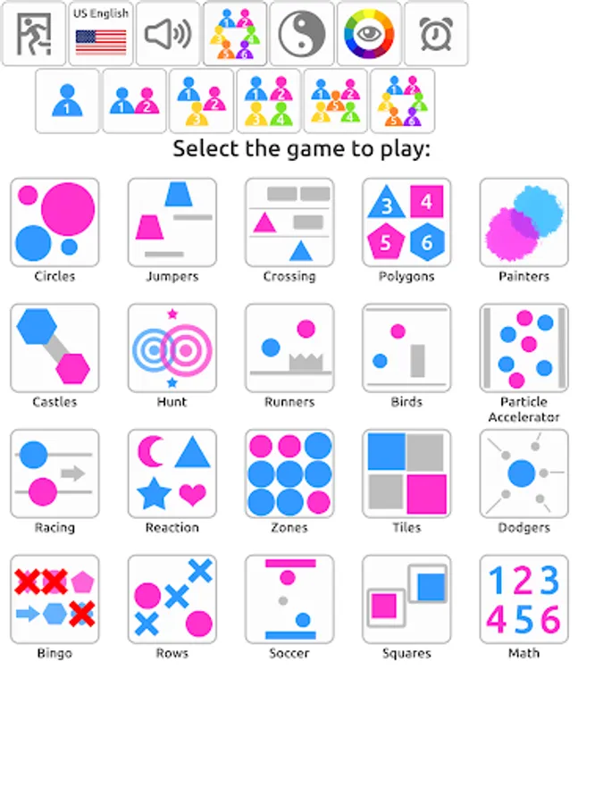 This is a collection of singleplayer / multiplayer games which can be played by 1, 2, 3, 4, 5, or even as many as 6 players on the same device (smartphone of tablet). Each of the games has very simple rules and is easy to pick up. You don't need wifi or the internet because this game is for offline, local multiplayer.
