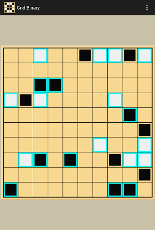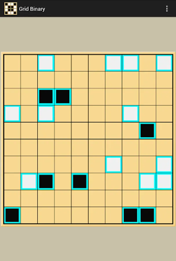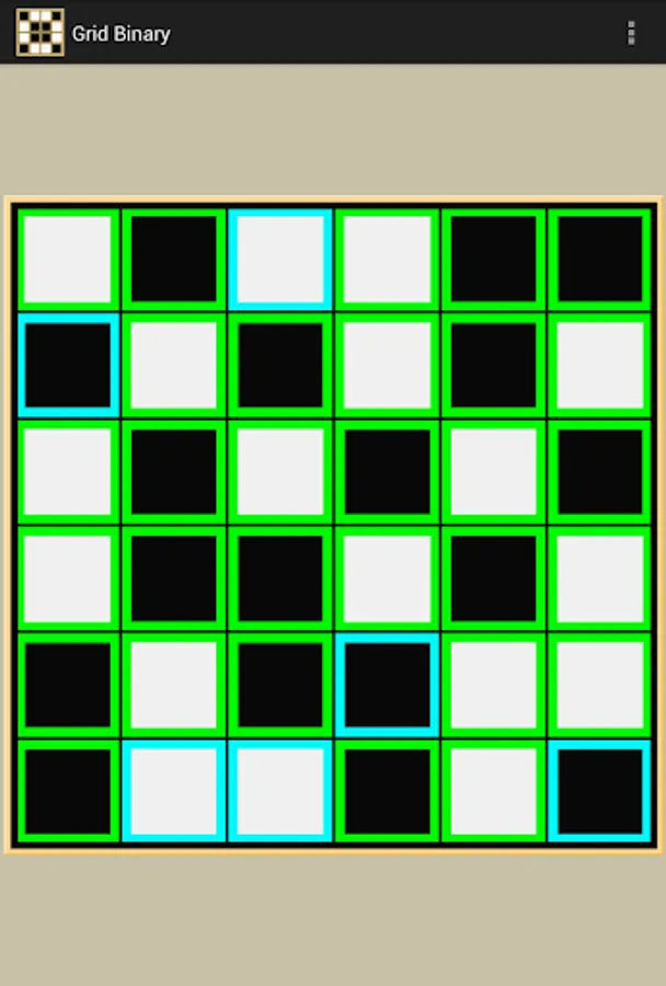 Grid Binary, also known as Takuzu or Binary Puzzle, is a logic puzzle game that requires each square in the grid to be filled with either a black or a white color, where there is an equal number of blacks and whites in each column or row and no more than two of the same color squares adjacent to each other. Additionally, each column and each row must be unique. There is only one possible solution for each game pattern.