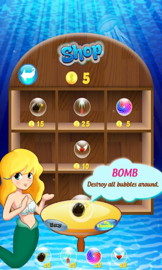 - Special Bubbles in Shop such as: Bomb, Power Arrow, Magic, Push Up, … bubble.