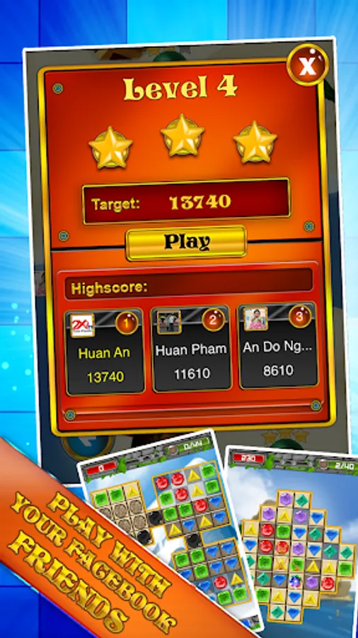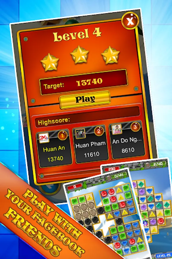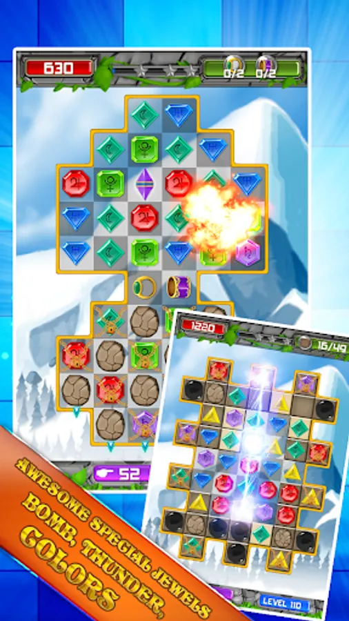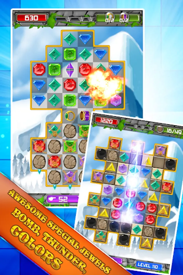 ✔ 6 different classic jewels and many special jewels with powerful-effect: bejewelled blast, bejewelled blaze, bejewelled star.
