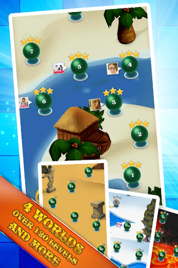 ✔ 5 Worlds with hundreds of challenging levels: Jungle world, Volcano world, Temple quest, Pacific treasure, Desert treasure. Pharaoh quest is coming soon.