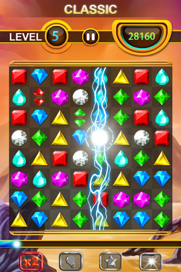 - Classic mode: you have to reach the jewel target score to go to next level and try to keep the jewels board always have one match at least.