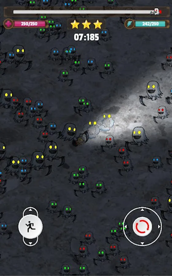 Defeat all different kind of ghosts in the campaign mode. Each level harder than the one before. Try to be as fast a possible to collect all the stars to progress in the campaign. There are different types of ghosts which all have their own strength. Make sure to fend off all the ghosts before you battery dies!