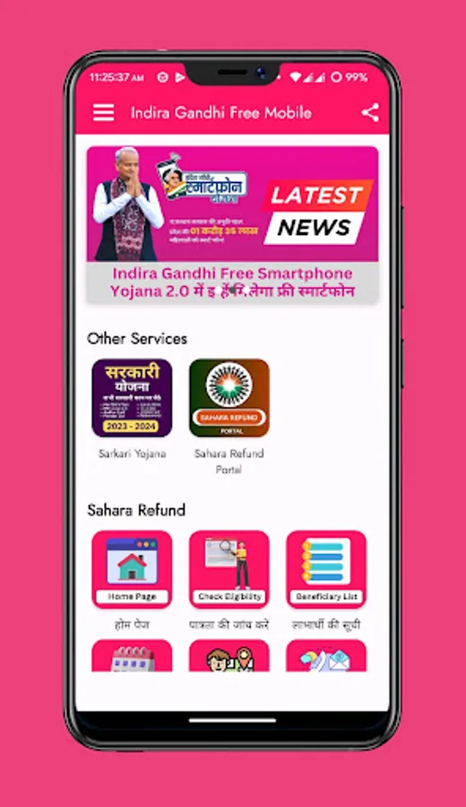 Under the "Indira Gandhi Smartphone Yojana", women of Chiranjeevi families of the state are being given smartphones.