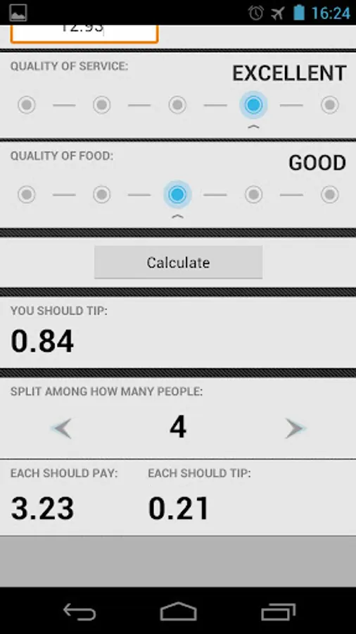 Designed to be as easy to use as possible, you can easily calculate tips based on your satisfaction with the food and service received.