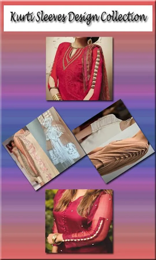 Looking for sleeve designs? App provides you the latest sleeve ideas for salwar suits and Kurtis. Follow the latest trends for dressing and get help with ultimate collection of salwar suit sleeve designs. Stitch your dressing by following the new sleeve design ideas. App contains the hand picked and foremost collection of girl suit sleeve designs. Mainly the traditional suits include kurtis and salwar suits, for women suit designs impacts a lot as it increases dress grace.