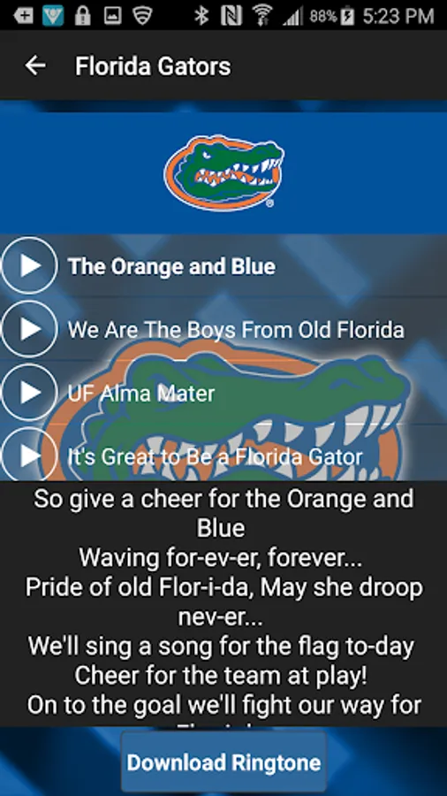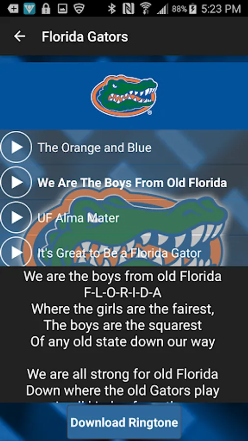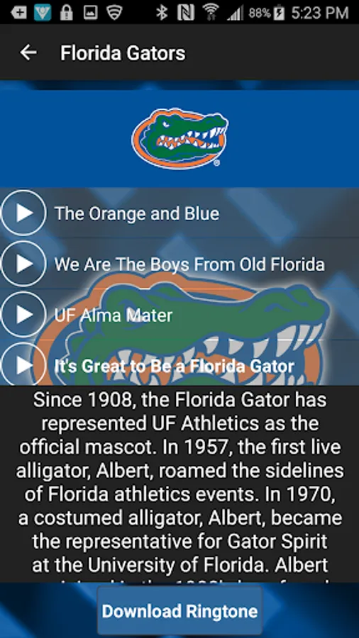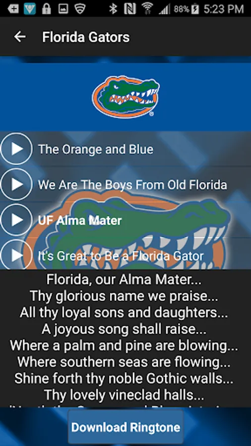 Officially licensed - "Florida Gators" Fight Songs and Ringtones -