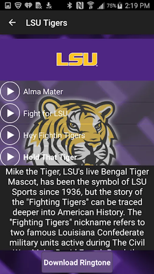 LSU Tigers Fight Songs and Ringtones - Officially licensed