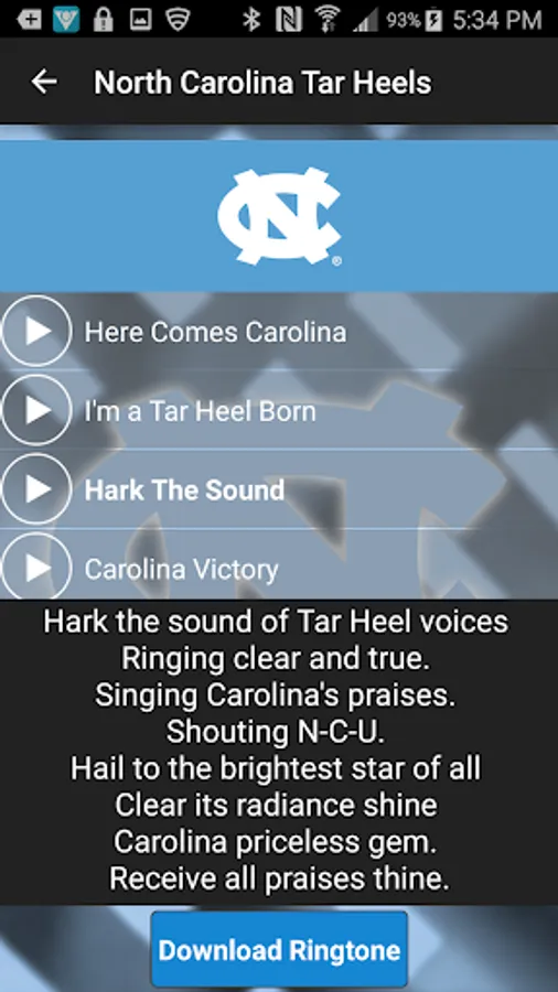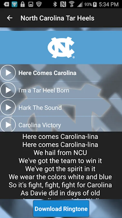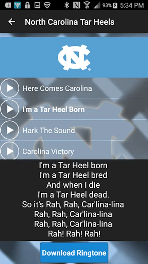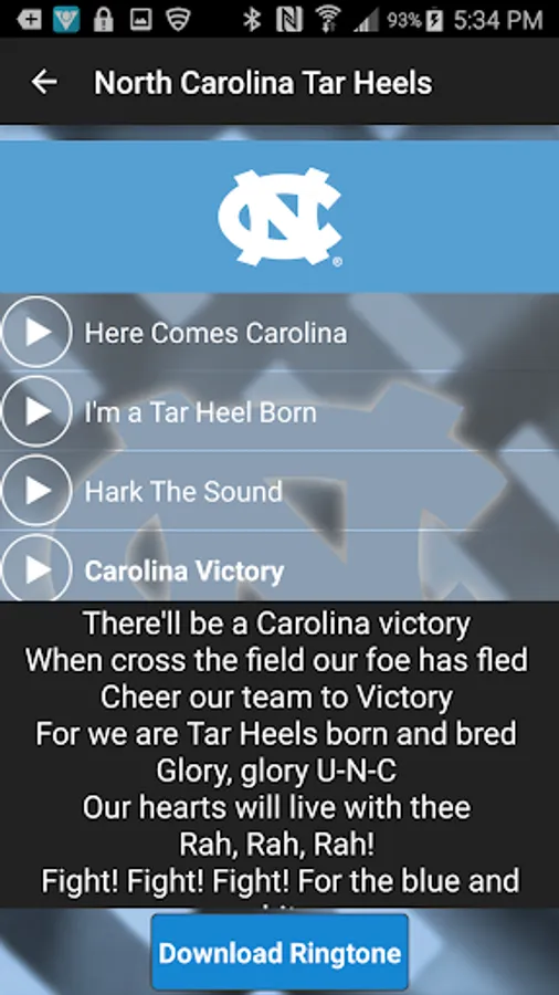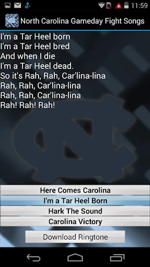 North Carolina Tarheels Fight Songs and Ringtones - Officially licensed
