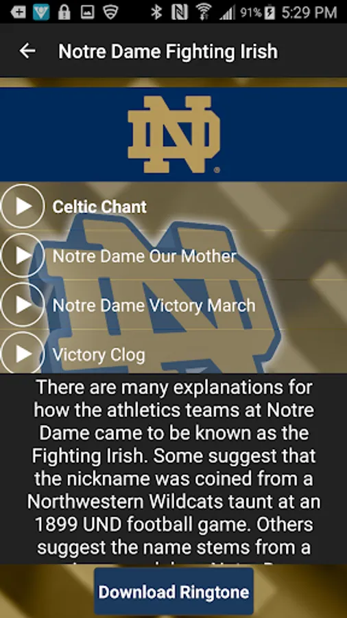 Notre Dame Fighting Irish Fight Songs and Ringtones - Officially licensed