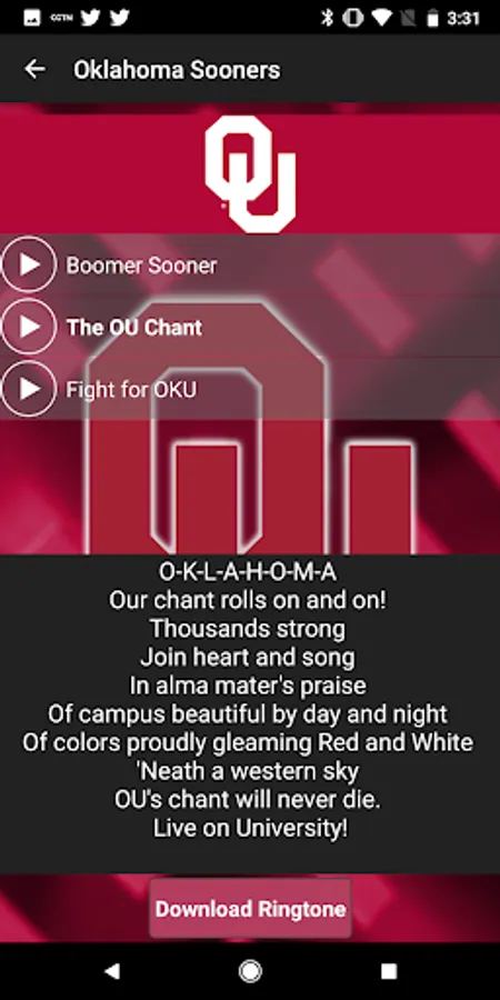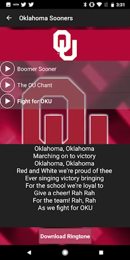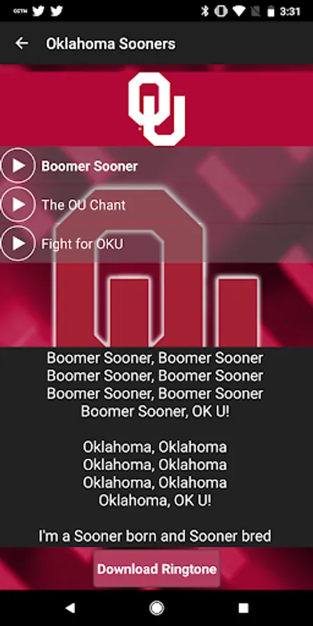 Oklahoma Sooners Fight Songs and Ringtones - Officially licensed