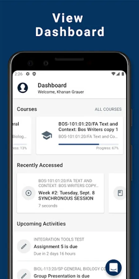 - Receive instant notifications of forum mentions, assignment updates, and more
