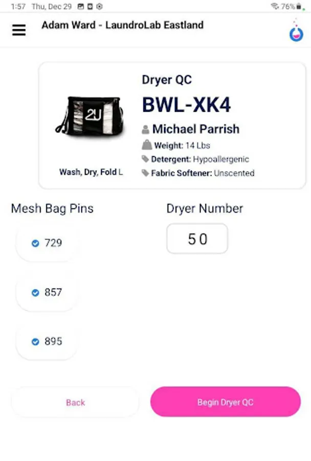 This app is for LaundroLab stores to track and process 2ULaundry pickup and delivery orders.
