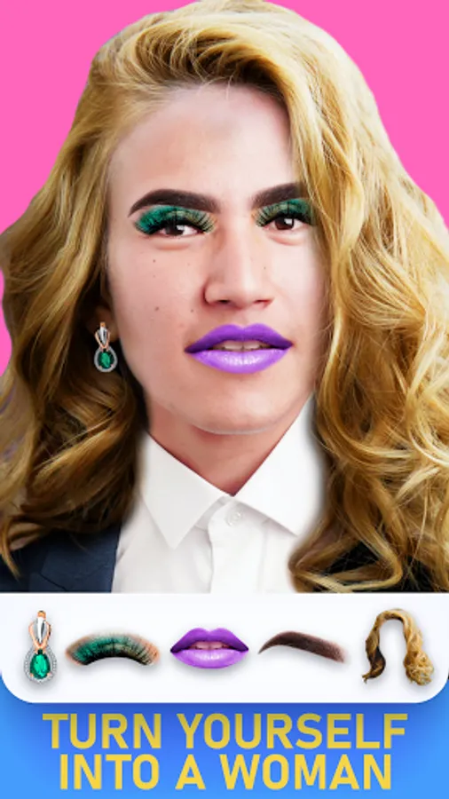 Turn yourself into a woman in the photo and amaze your friends with our free photo app.