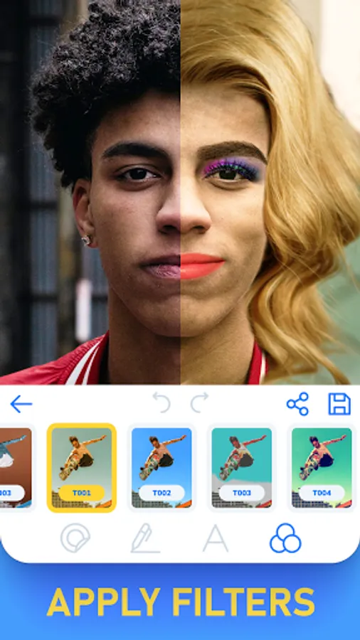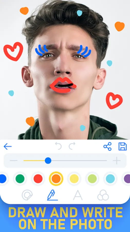 Our fun photo editor will allow you to turn yourself into a woman in the photo and cheer your friends with cool photos. Put on a wig, make up your lips, make up with our photo app. Just take a photo and attach the necessary stickers to your photo. Colorful filters allow you to easily make your photos more beautiful. Write and draw on photos, just select a color and swipe your finger across the screen. Add any text and emoji to your photos.