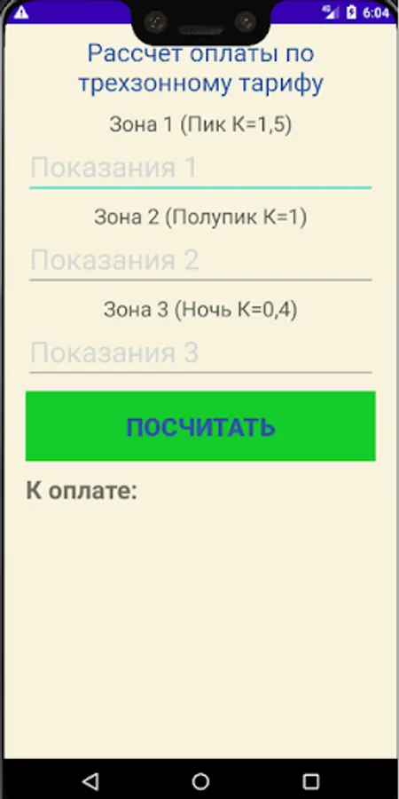 Night - coefficient K1 = 0.4, beginning and end of the period - 23: 00-7: 00