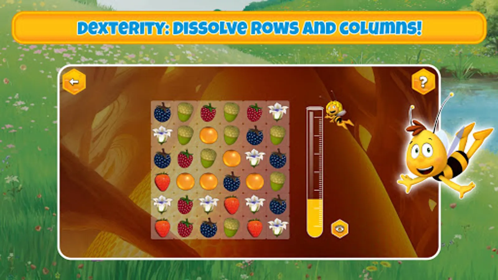 Bring at least three of the same objects in a row or column until the test tube is completely filled with honey!