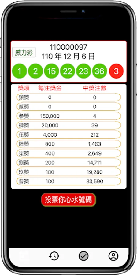 This program is not an official program of the Taiwan Lottery Company and the Ministry of Finance, and has no relationship with the Taiwan Lottery Company or the Ministry of Finance. If there is any error in the drawing information, the prize number and amount announced by the Taiwan Lottery Company and the Ministry of Finance shall prevail.