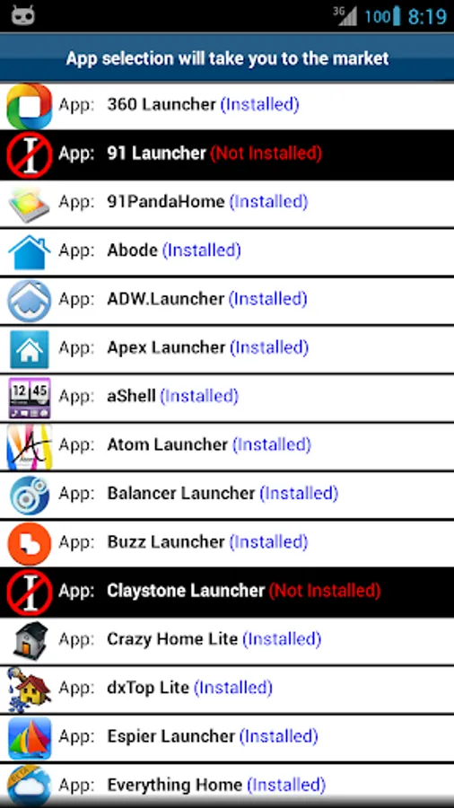 NOTE: Twisted Apps doesn't support any of the Home Apps which are referenced through Twisted home Manager. Nor does Twisted Apps guarantee that any of these Home Apps will function well on your device. They are only listed for convenience to find them on the Android Market to try them out.