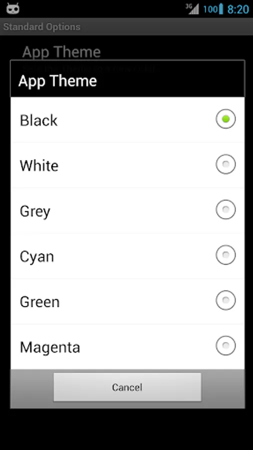Currently the preferences will allow you to change between different themes: Black, White, Grey, etc...