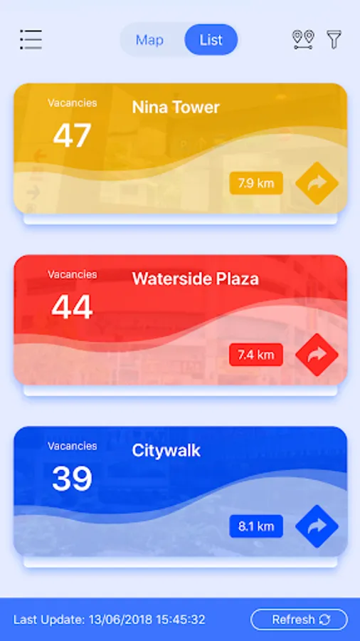 1. Provide overall parking availability (parking dashboard) on the App UI, users can choose to view nearby carparks by distance or by real time vacancy data