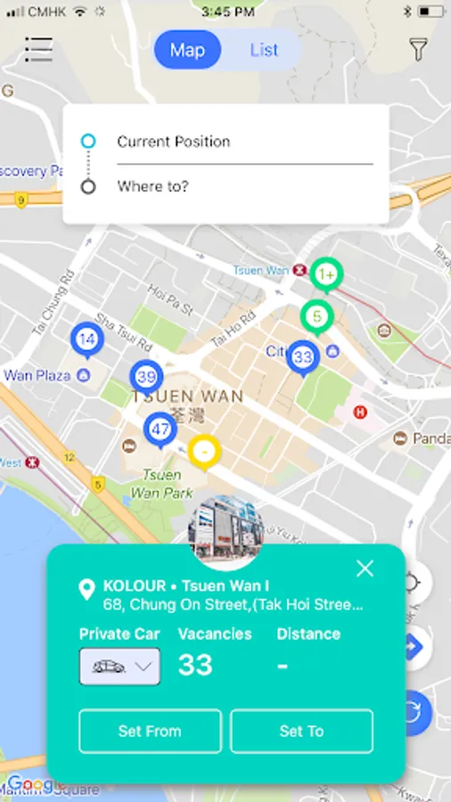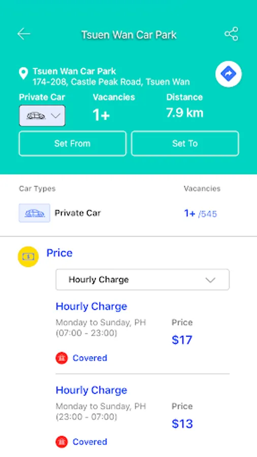 4. Simply click the carpark on the parking dashboard and pin on the map to reveal full car park details including parking rate, parking privileges