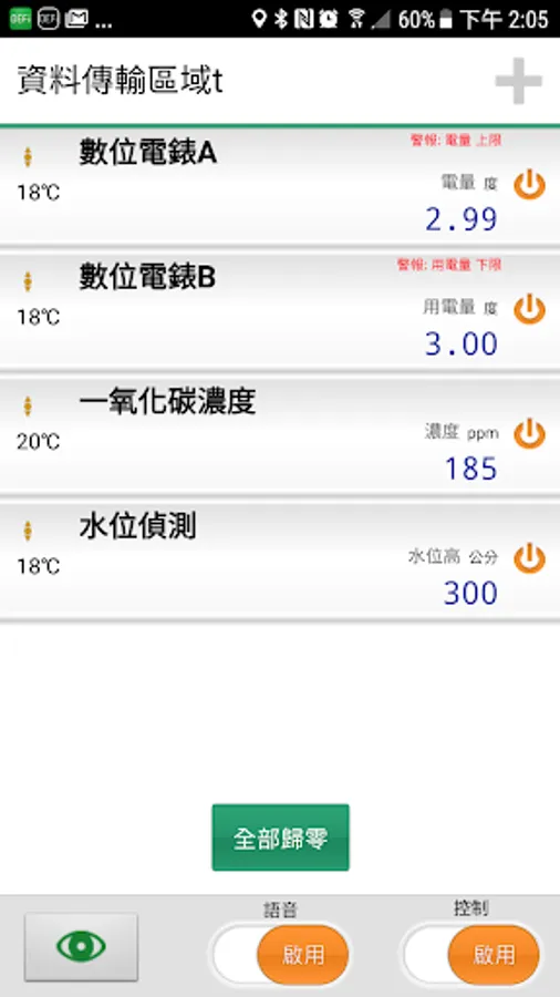 - data arrives on the lower limit guard value, immediately release Email or SMS, voice and push notification issue