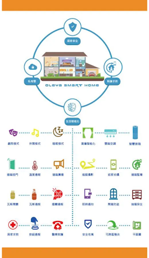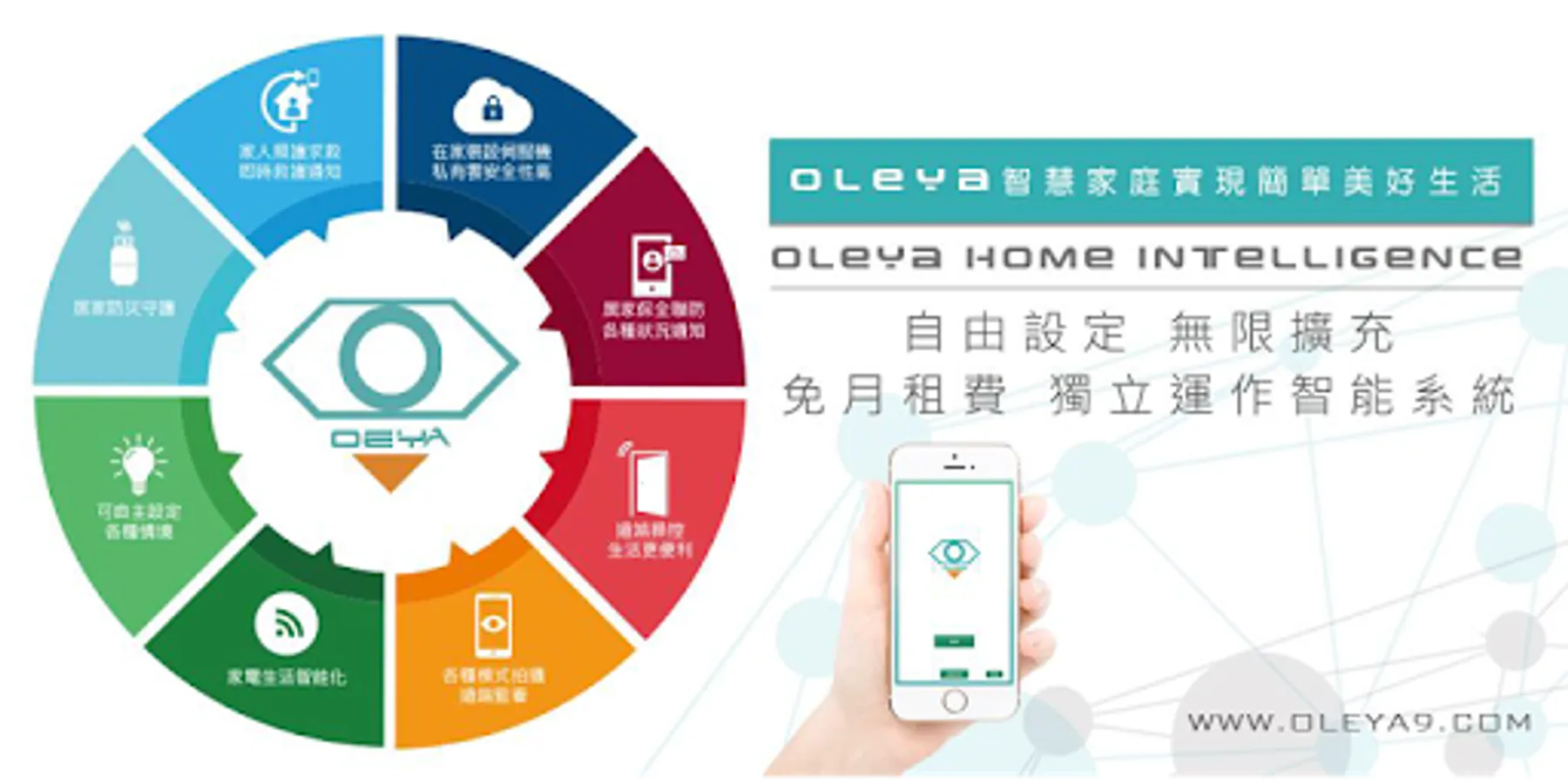 OLEYA applies Internet of Things (IOT) software and hardware integration technology to construct an innovative wireless smart home platform with the following characteristics