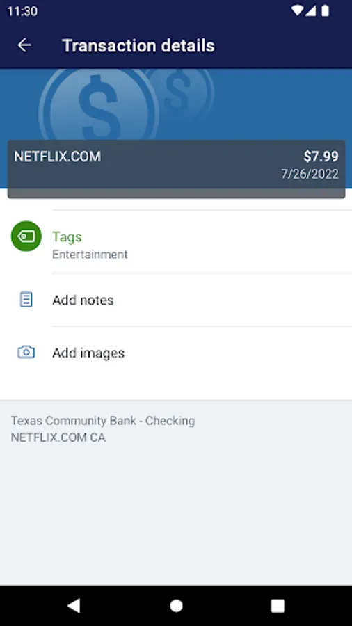 Keep your transactions organized by allowing you to add tags, notes and photos of receipts and checks.