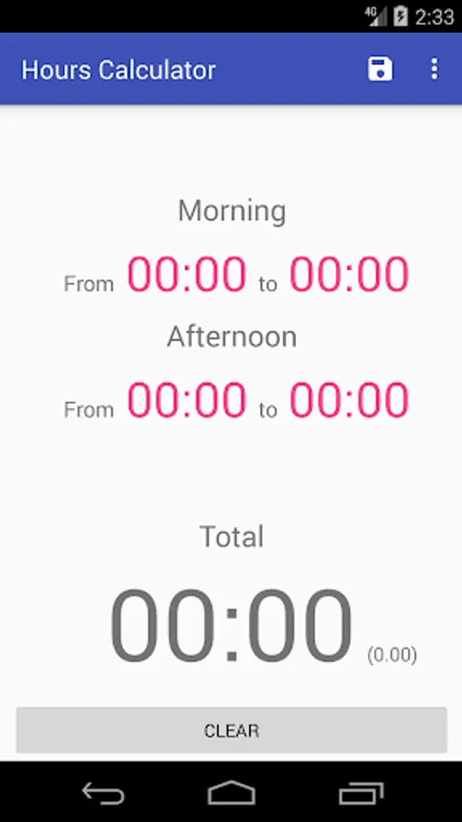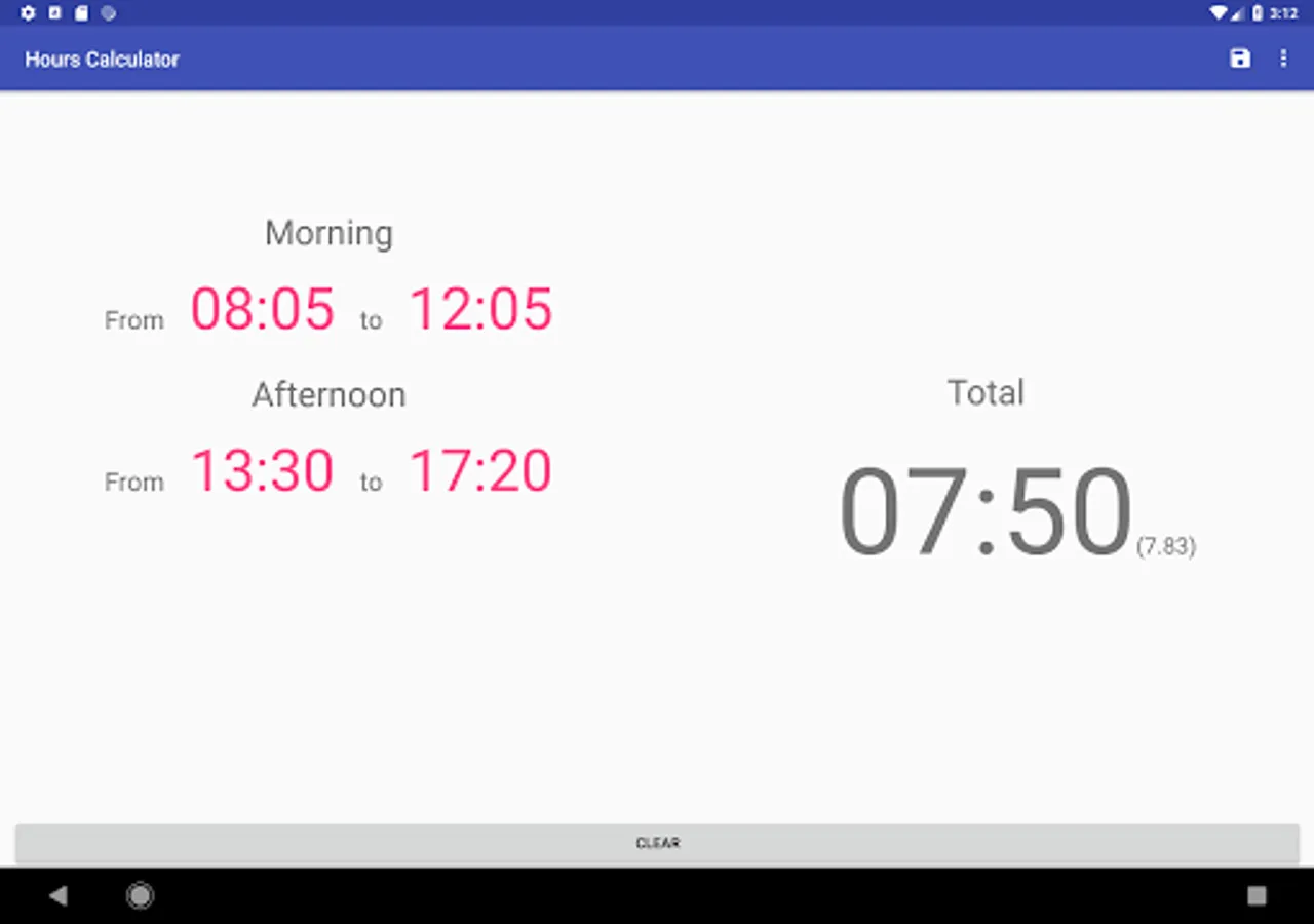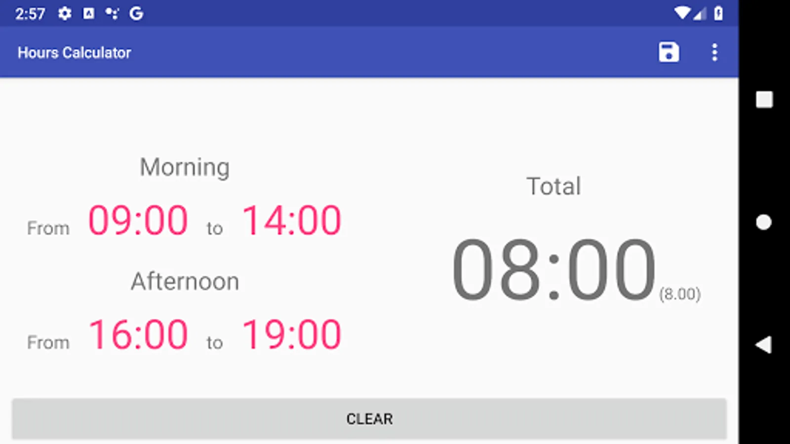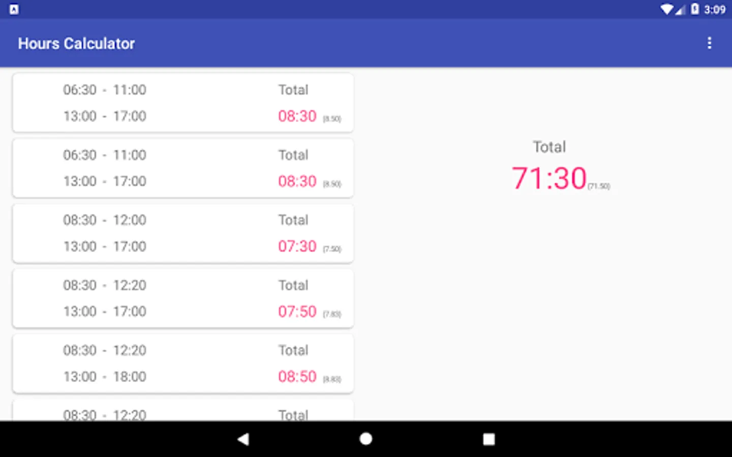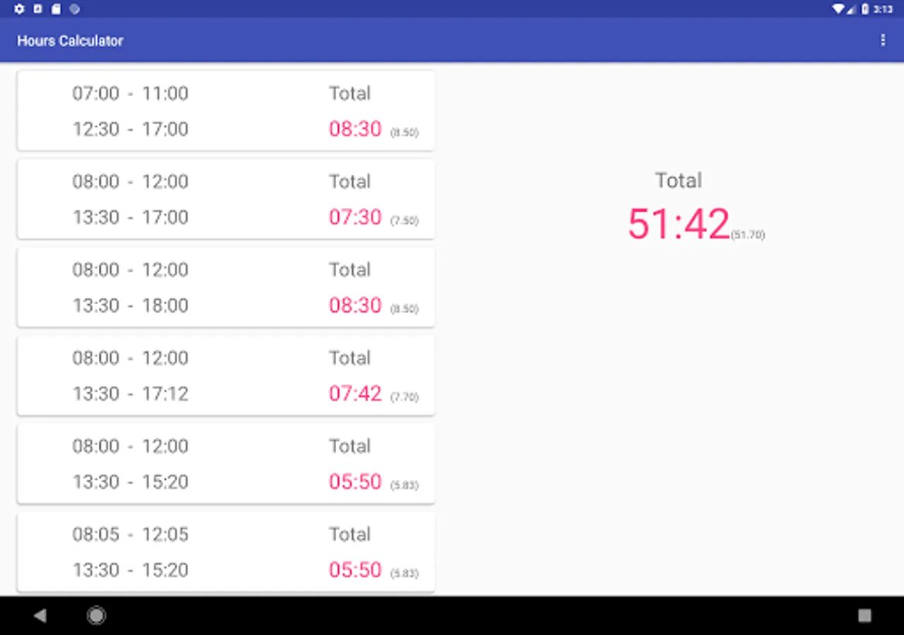 The app calculates the time that you've been working for the day taking into account the lunch break and allows to keep a simple record of your shifts.
