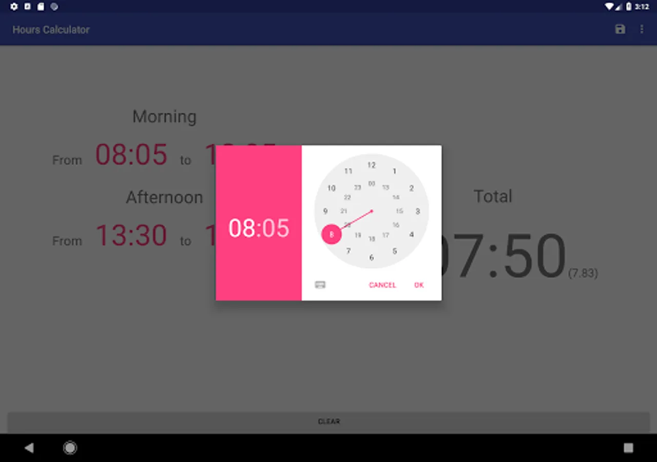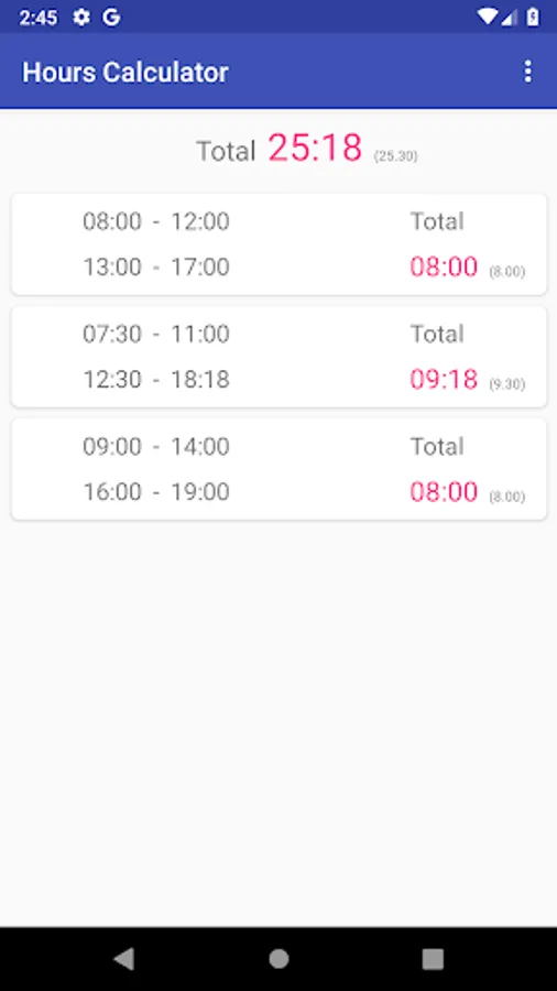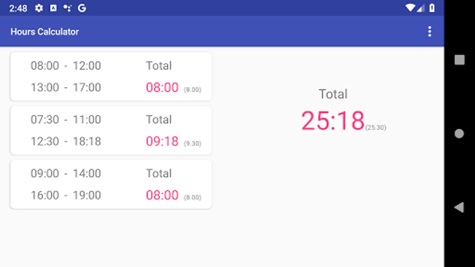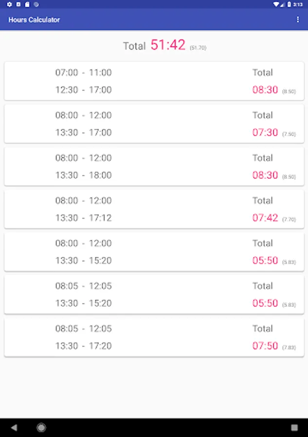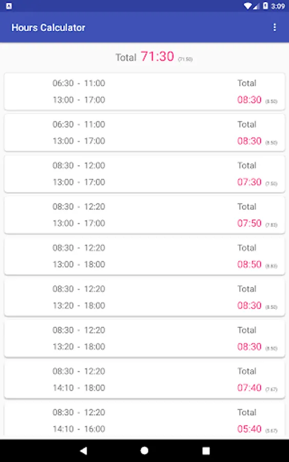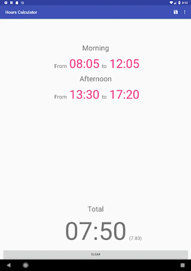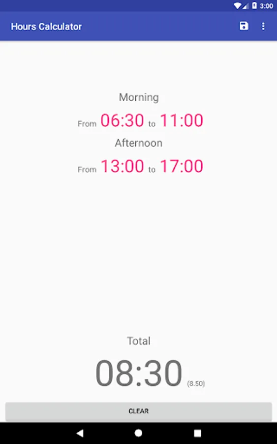 The app calculates the time that you've been working for the day taking into account the lunch break and allows to keep a simple record of your shifts.