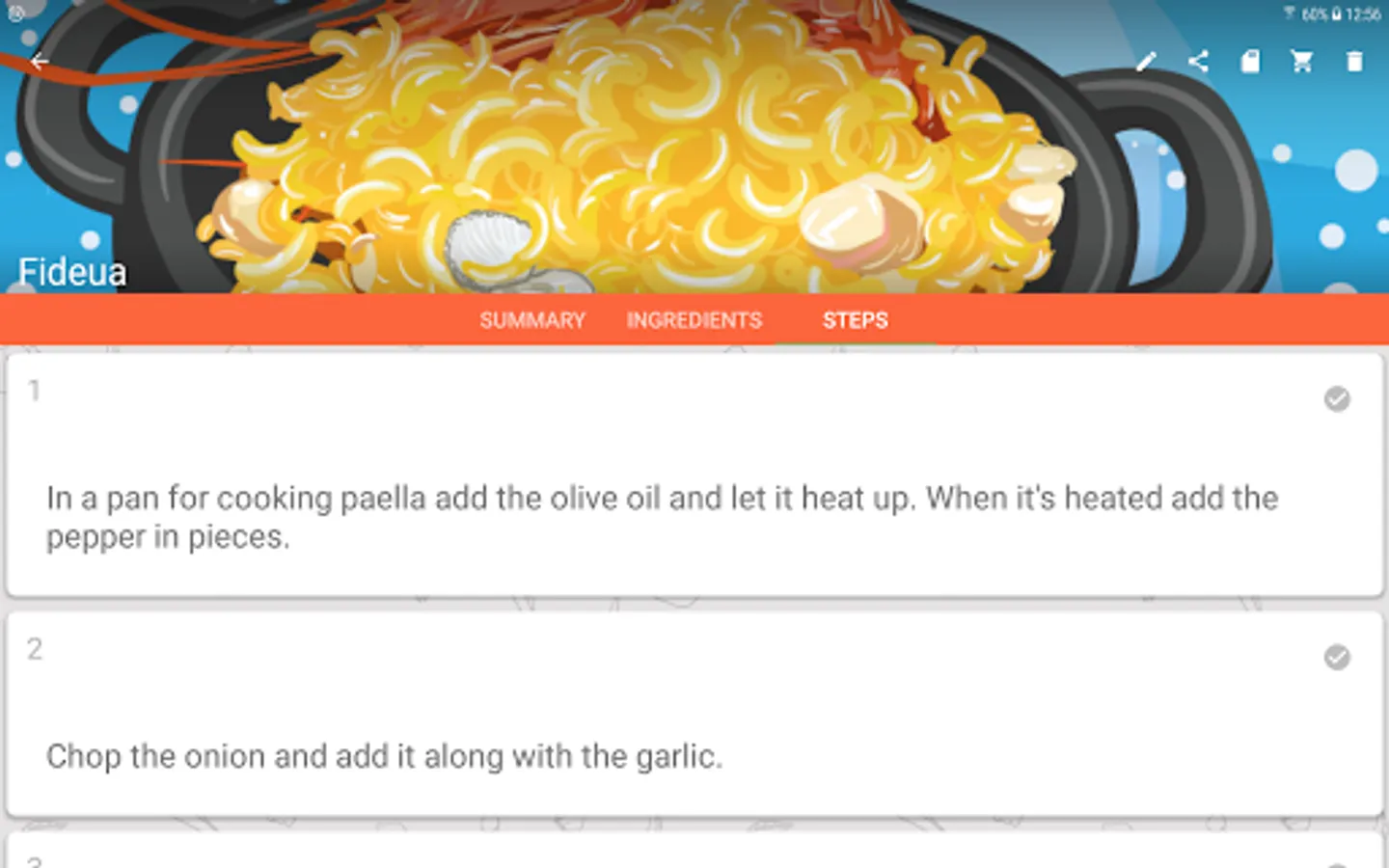 Send the recipes ingredients to the shopping list, edit and add new ingredients to access them easily when you are shopping.
