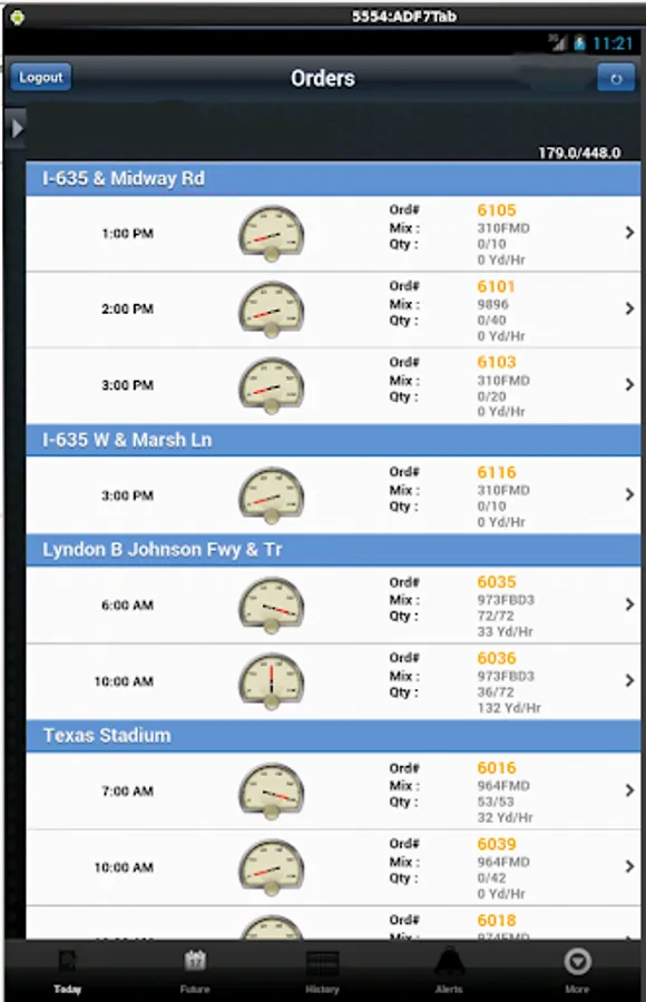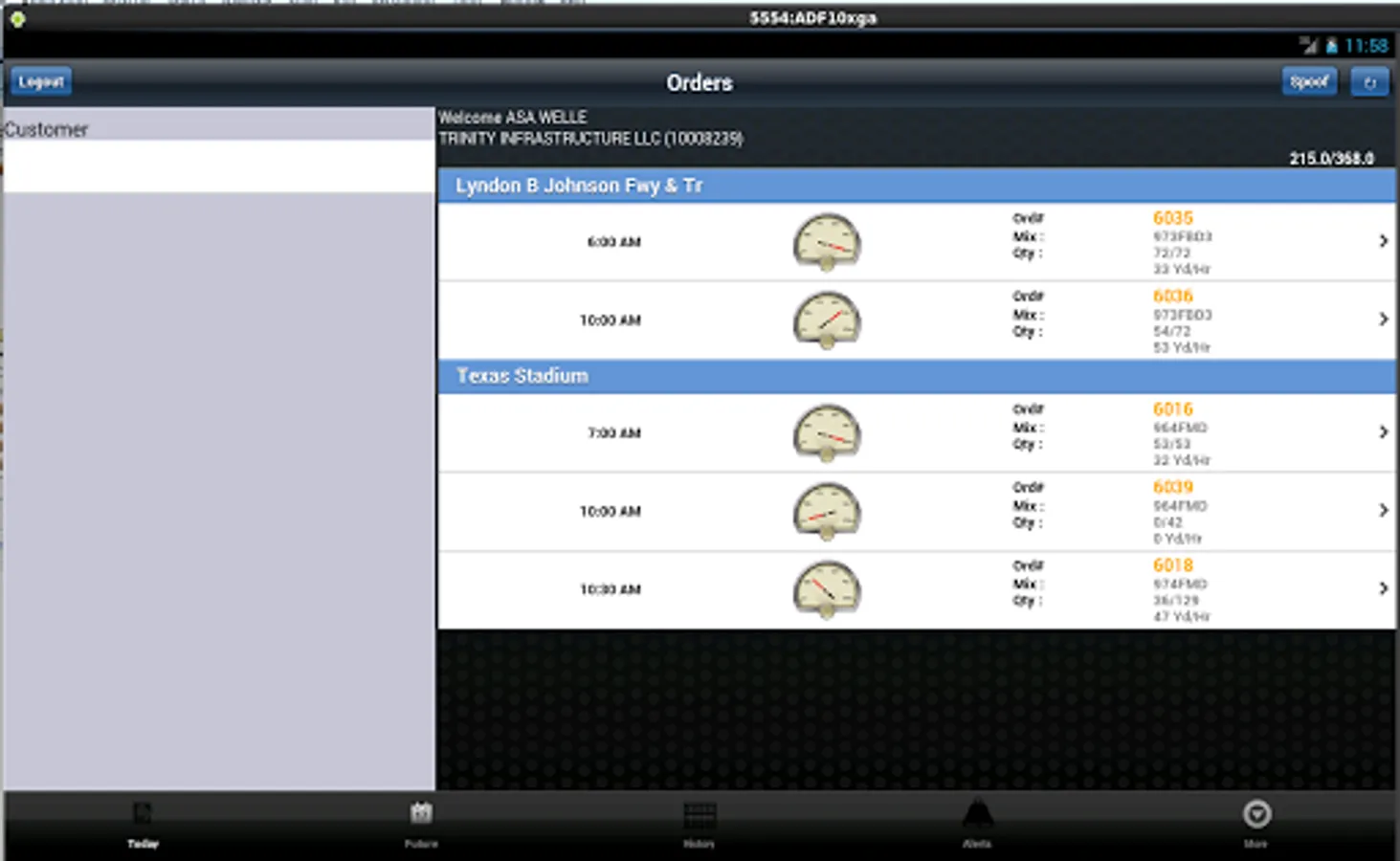 The ReadyTrac app allows the customers unprecedented access to real-time delivery information. It delivers online information that enables managers, superintendents, and dispatchers to track ready-mix orders on a real-time basis. With a mobile GPS infrastructure driving READYTRAC, customers are able to view plant departure and job arrival times, as well as status on ground placement of concrete. By having access to crucial order information, customers are able to improve crew efficiency and productivity by allocating on-site resources accordingly.
