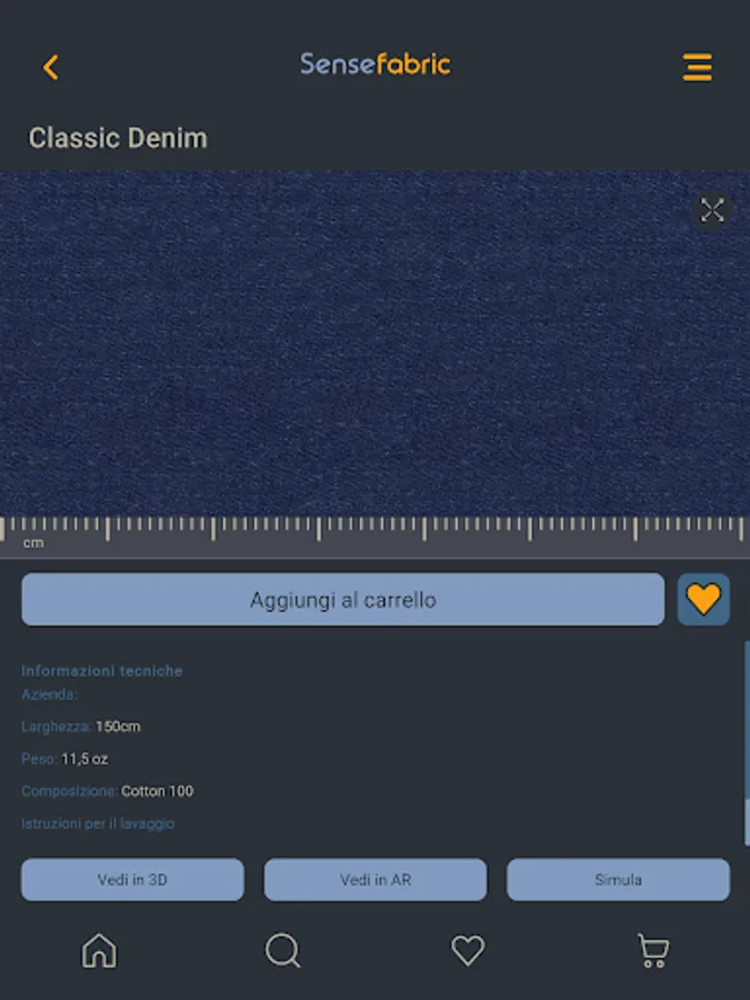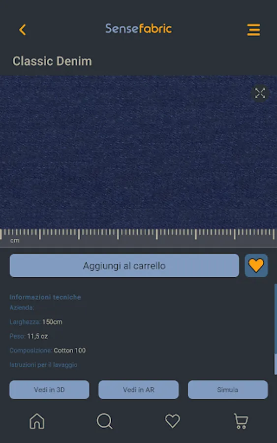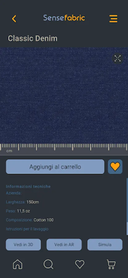 Using Sense technology users can “touch” the sample, appreciate its physical behaviour interacting with this moving the smartphone, can zoom in the texture to see all details and can have complete catalogue available at any time.