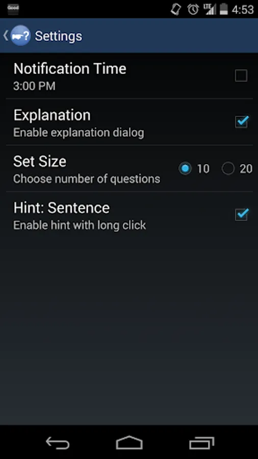 Do you forget to study? Set a daily notification to remind you to answer a few questions.