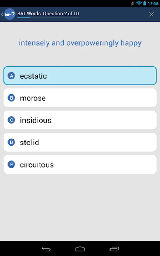Quiz yourself on the top 1000 words from past SAT tests. The best way to increase your verbal SAT score is by improving your vocabulary. This is also useful for the GRE, PSAT, ACT, GMAT, TOEFL, MCAT, LSAT, GED and other standardized tests.