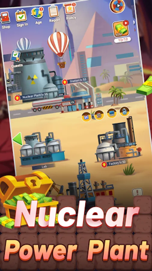 –Zeppelin Warfare: Tap zeppelins that randomly appear for various rare loots to help expedite your empire's development.