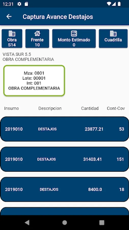 Application for use by employees of Tierra y Armonía or suppliers who are in charge of the management and assignment of activities and piecework in the different developments under construction.