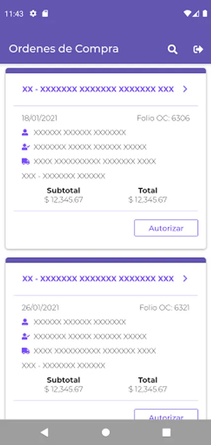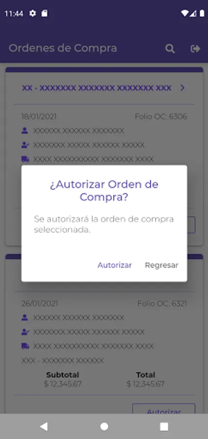 This application allows Tierra y Armonía collaborators to authorize and view in detail the purchase orders generated.