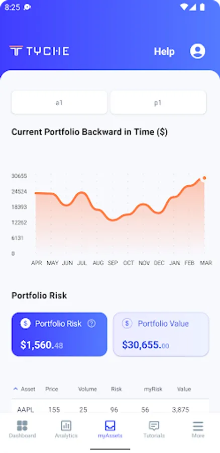 Tyche provides two types of risk for each asset. The first one we call Risk represents the asset risk as if it is the only asset in your portfolio. The second we call myRisk, which represents the risk the asset adds to your overall portfolio. myRisk is always lower than Risk because any loss in that asset could possibly be compensated by gains in other assets in your portfolio.